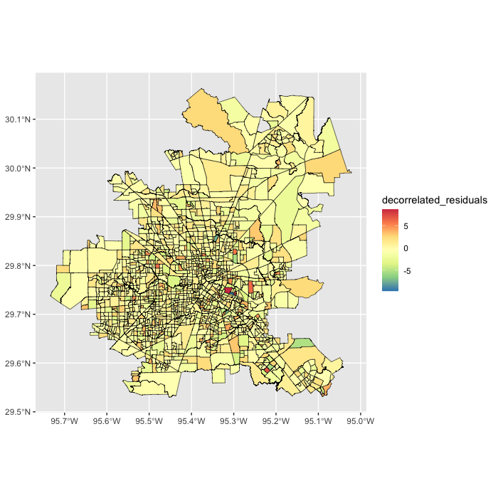 - Found that areas outside central Houston showed higher unexplained risks, suggesting the need for targeted interventions.